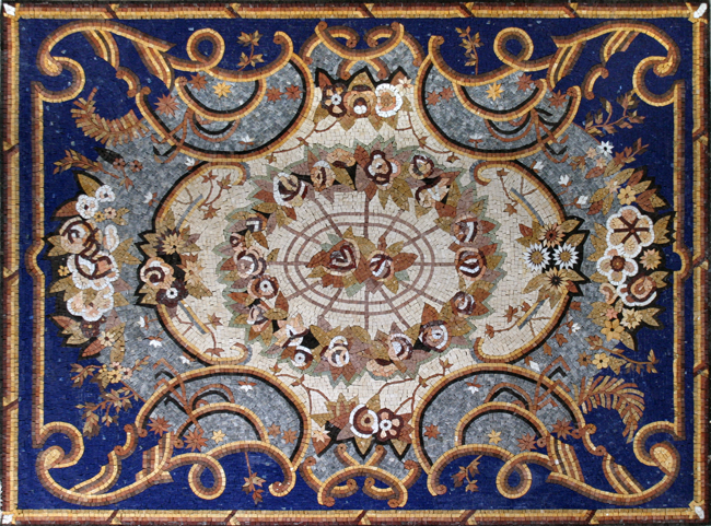 CR159 Royal blue artistic floral design Mosaic