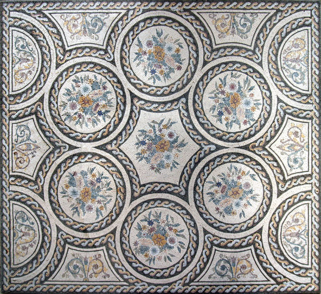 CR16 Circular floral design with wave borders Mosaic