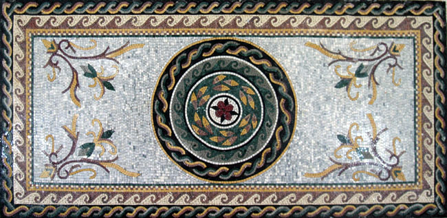 CR161 Green & gold roman leaves and waves border Mosaic