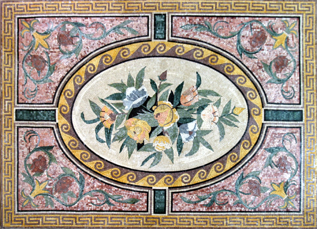 CR186 Floral Design with Greek Keys Border Mosaic