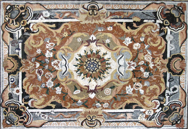 CR196 Rectangfular floral design with border Mosaic