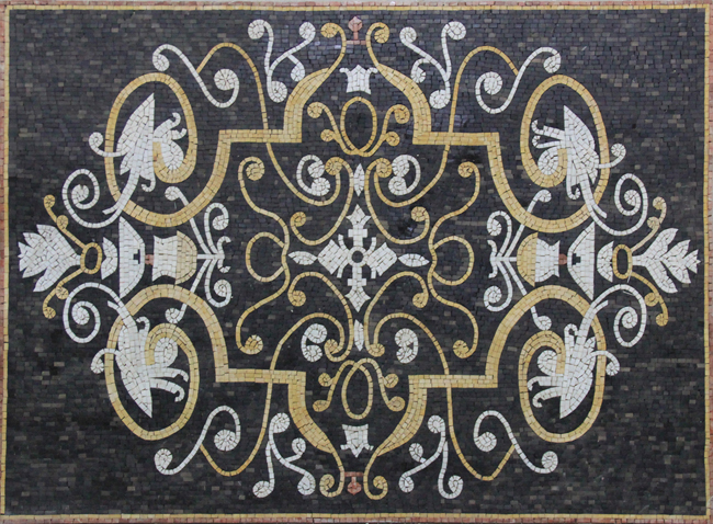 CR254 black gold & white elegant floral art Mosaic