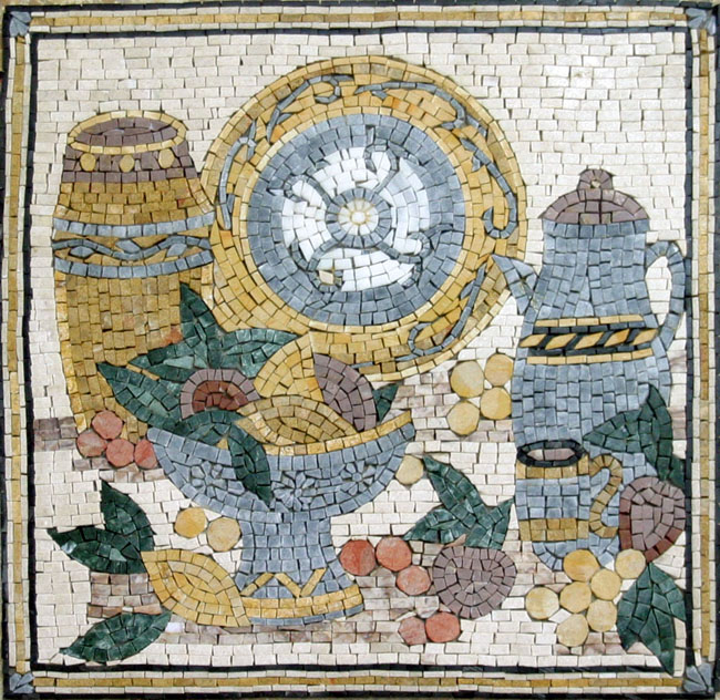 Fruit Bowl & Jugs Bordered Square Backsplash Mosaic