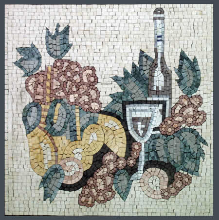 Fruits & Wine Still Life Square Backsplash Mosaic