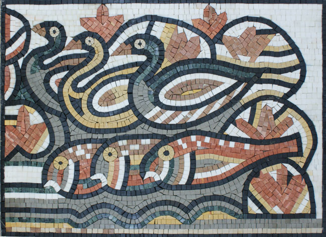 Greco Roman Duck and Fish Mosaic Detail
