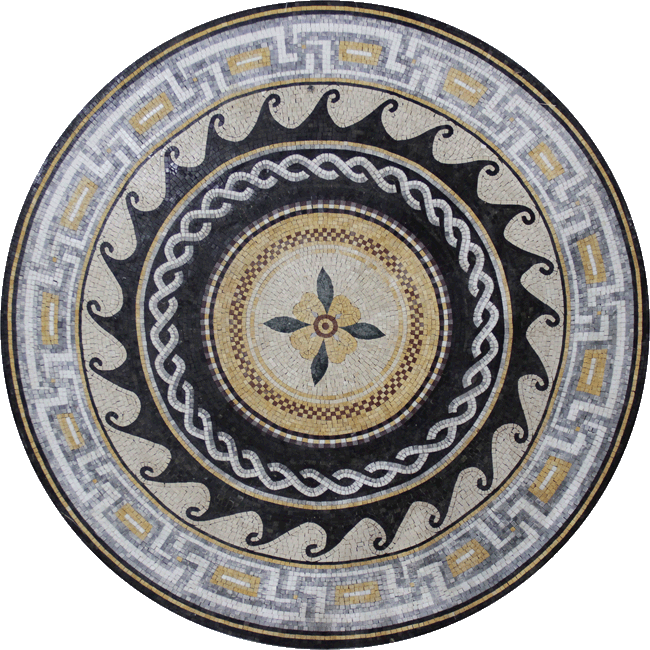 MD1382 Greek Round Medallion Wave Twisted Rope Mosaic