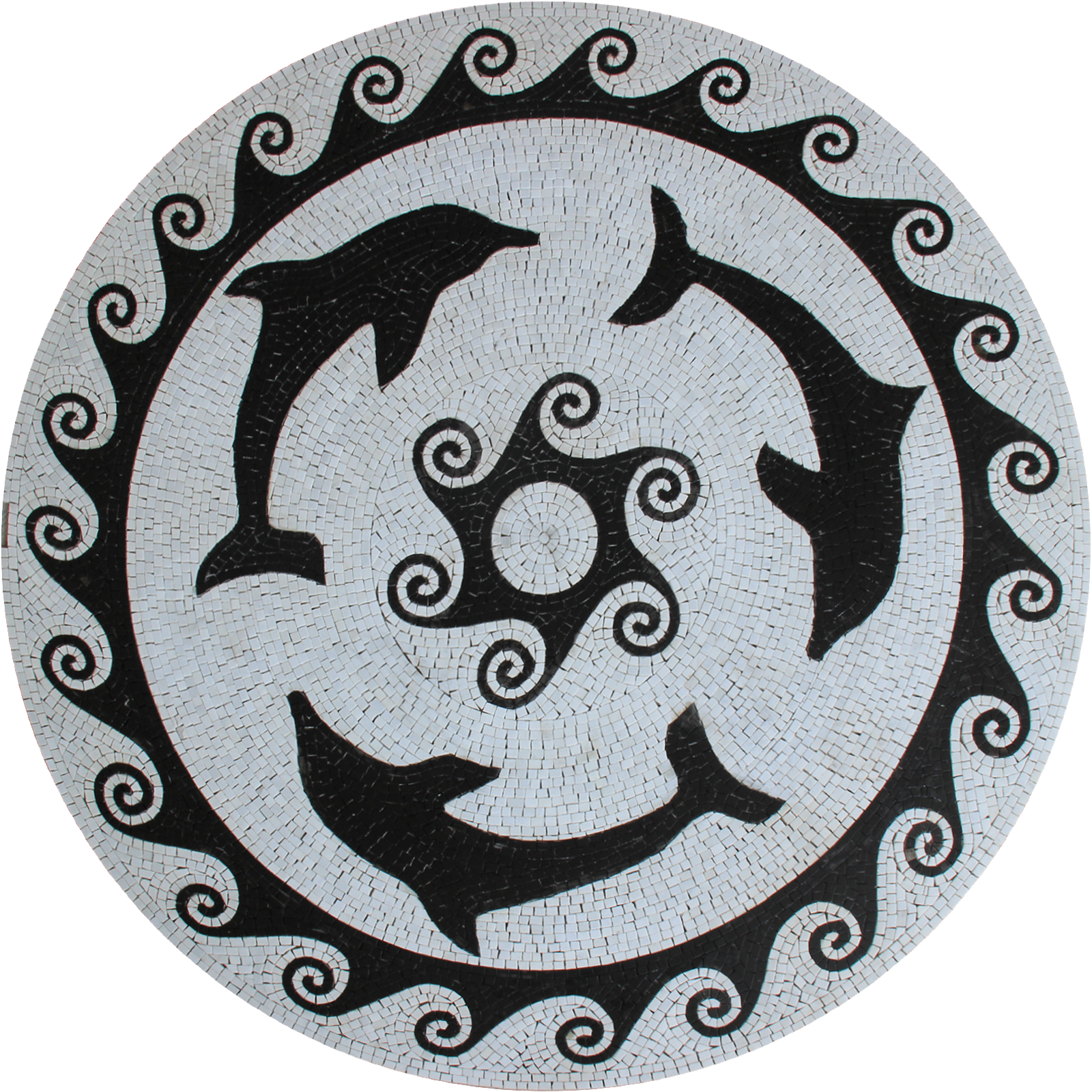 Round Dolphins Pool Mosaic